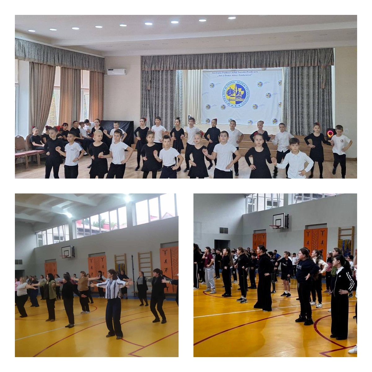 Cei mai mici dintre școlari au încântat printr-un dans ritmic, aducând culoare și entuziasm întregii activități.