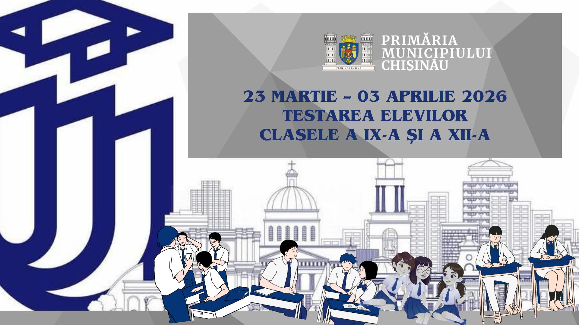 🏛️ Primăria municipiului Chișinău, prin Direcția Generală Educație, Tineret și Sport, anunță organizarea, în perioada 23 martie – 03 aprilie 2026, a unei etape de testare a elevilor din clasele a IX-a și a XII-a, în vederea pregătirii pentru examenele naționale de absolvire.