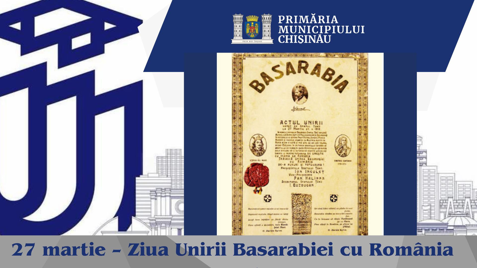 Primăria municipiului Chișinău împreună cu Direcția Generală Educație, Tineret și Sport marchează astăzi un moment de referință pentru istoria și identitatea noastră națională – aniversarea actului de la 27 martie 1918, când Sfatul Țării a decis Unirea Basarabiei cu România.